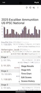 It has never been easier to view and compare match results, as well as analyze competitor performance for IPSC, USPSA, Steel Challenge, IDPA, ICORE, PRS, ProAm, NRA, 3-Gun, PCSL, and other matches.https://community.practiscore.com/t/practiscore-competitor-app-info/209Before giving app bad rating, please contact us at support@practiscore.com for any issues. We respond quickly and will do our best to address problems.* Search and download results posted on https://practiscore.com and several other web sites* Sync over WiFi during match from scoring devices running PractiScore* View and compare multiple competitors side by side* Dig into every details of the match performance* Easily search results posted to PractiScore website by match name or by competitor name* Import match results posted to PractiScore and several other websites* Sync over Wi-Fi during match from scoring devices running PractiScore 2 app* Look at the loaded match results offline* View and compare multiple competitors side by side* Dig into every detail of the match performance* Instant classification info and classifier history for USPSA, Steel Challenge, IDPA and ICORE* Combined results for selected divisions* Advanced search and filter match and stage results* What-if editing features. Can play with competitor division, power factor, hits, misses and stage times to see how that affects stage and match scores* Advanced stage info and classifier stage analysis* Advanced stage time analysis, comparison and charts for the data captured with Bluetooth-enabled timers