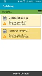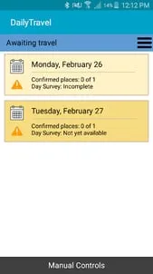 DailyTravel is an app designed by Westat to collect travel information for transportation studies. This information includes the location of places visited by participants along with details that explain the why, how, and when of travel to these places. Transportation planners will use information collected from this study to develop forecasts of future travel in your city, region, and state. A number of households have been randomly selected to participate and represent households in the entire region. Only selected households have been provided a Personal Identification Number (PIN) and are able to use the DailyTravel app. The information that your household and other households in the survey provide will help build a complete and accurate picture of state and local transportation needs so that public funds for improvements can be spent where they are needed most. Please visit https://dailytravelapp.com/ for more information.